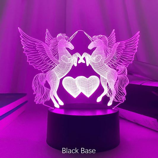 lampe de chevet Veilleuse LED Illusion 3D Chevaux et Cœurs